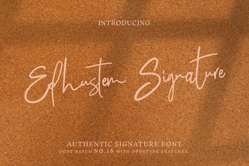 Edhustem Signature with a handmade Signature style, decorative characters and a dancing baseline! So beautiful on invitation like greeting cards, branding materials, business cards, quotes, posters, and more!!