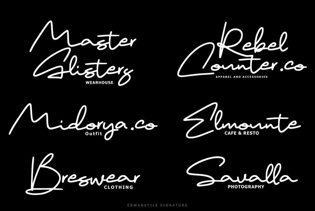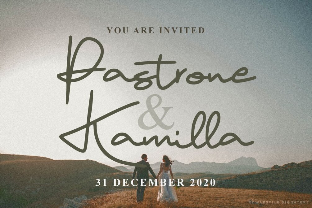 Edwarstile Signature with a handmade calligraphy style, decorative characters and a dancing baseline! So beautiful on invitation like greeting cards, branding materials, business cards, quotes, posters, and more!!